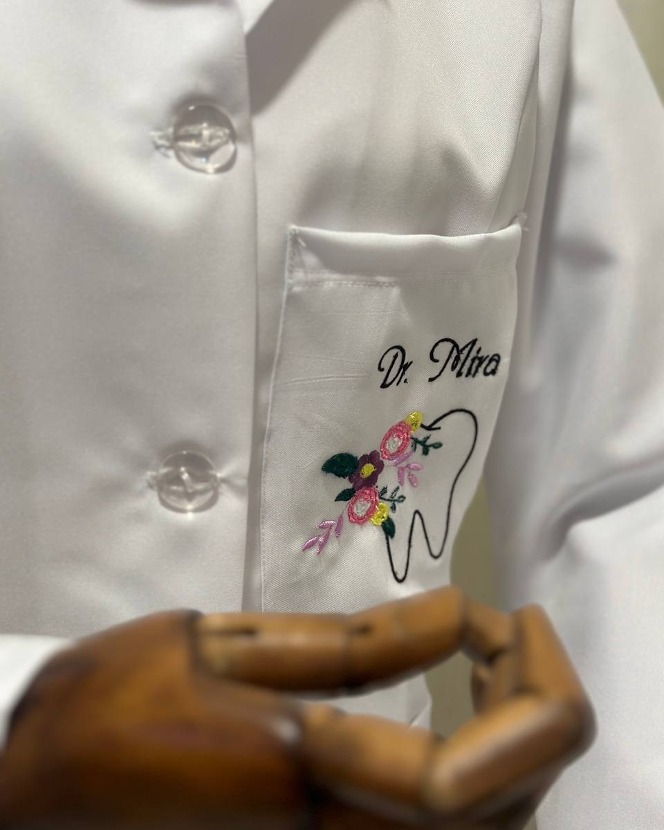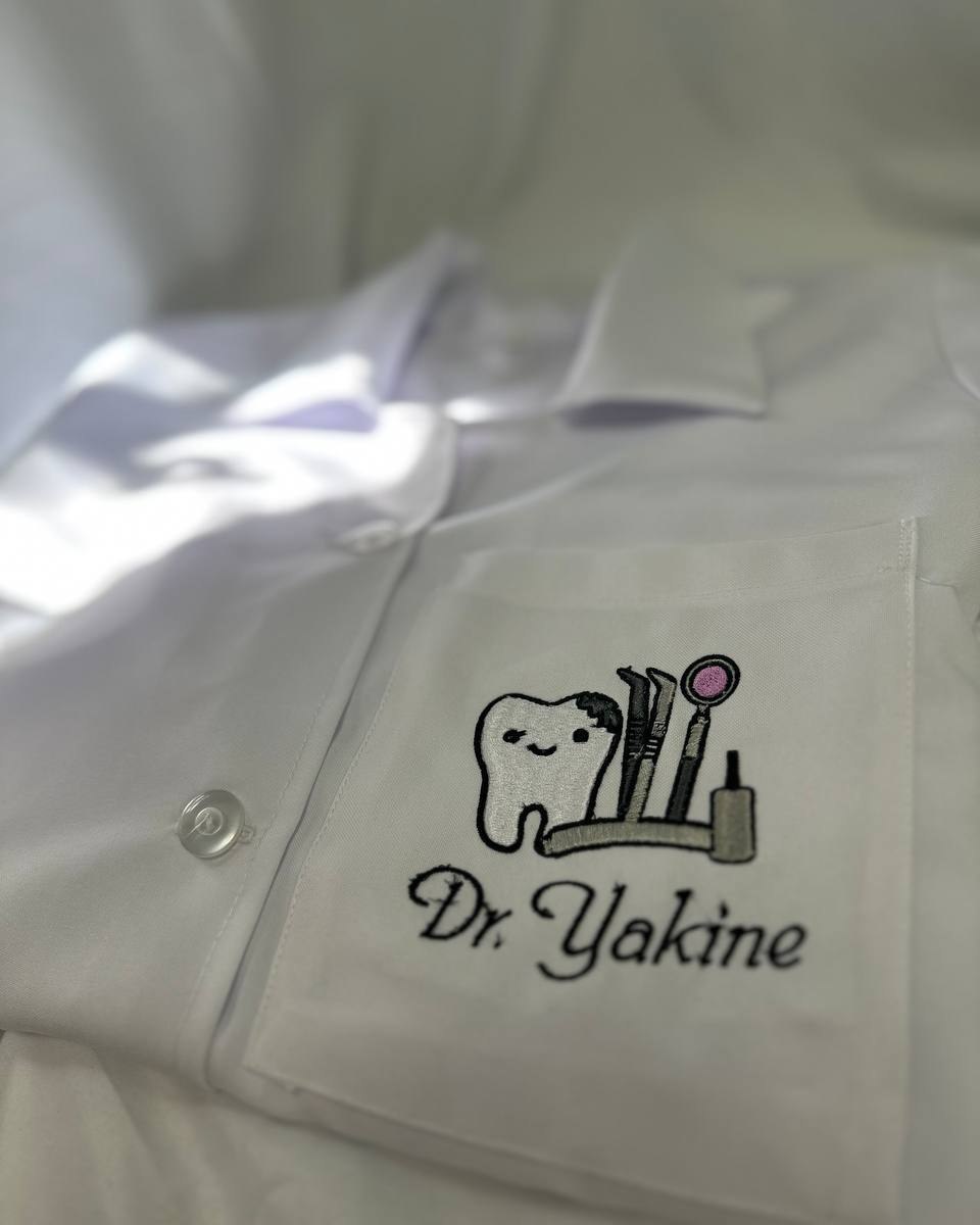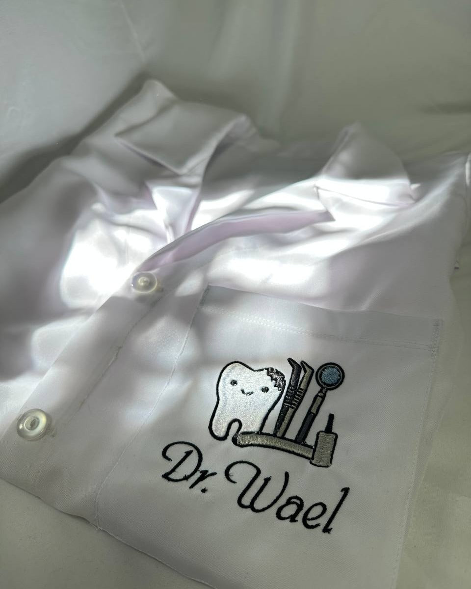 في "خيوط وإبر"، نعمل على تقديم أفضل الحلول للمجال الطبي. نفخر بتقديم روب دكتور أسنان فريد مطرز بشعار طب الأسنان الذي ترغبون به.